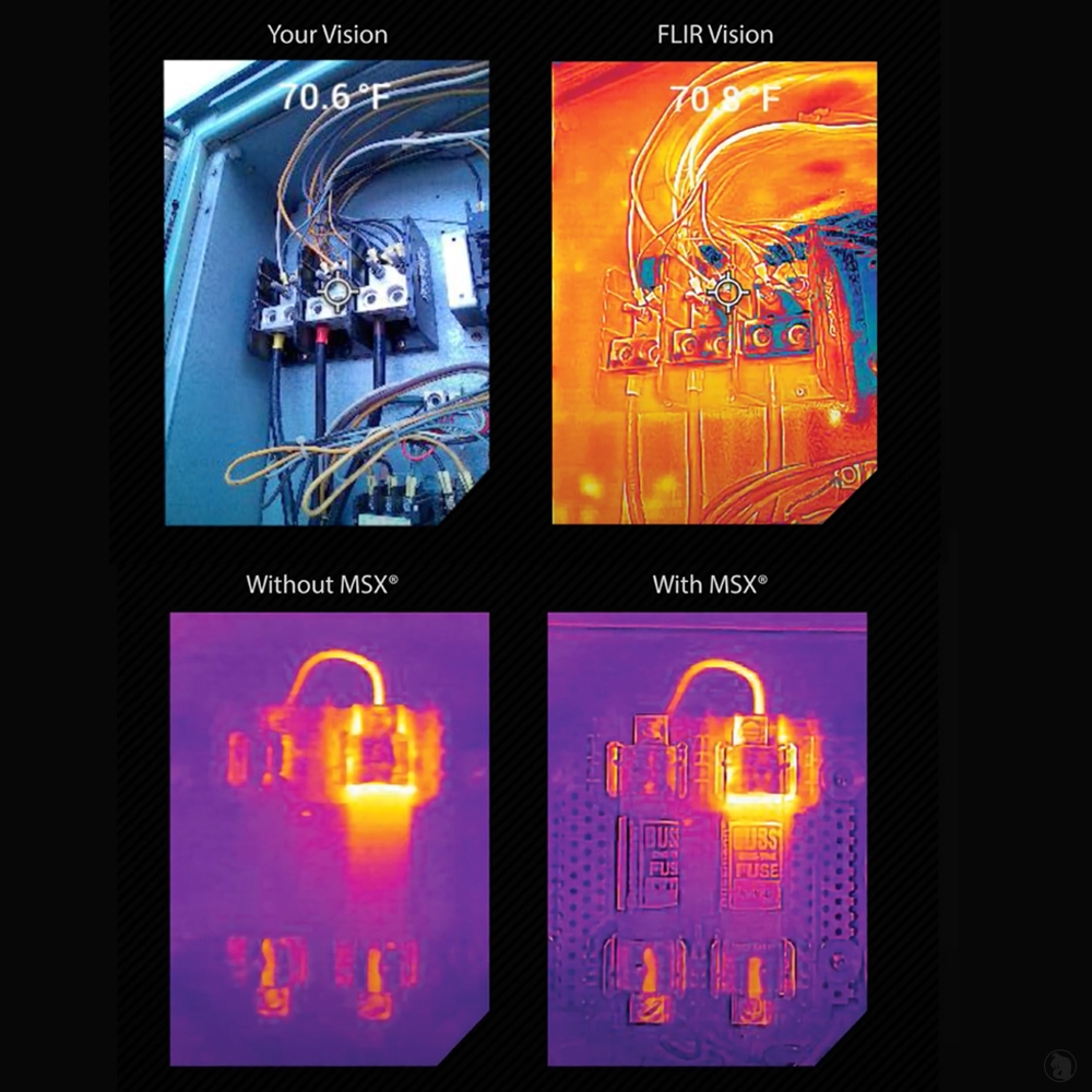 The FLIR TG267 takes you beyond the limitations of single-spot IR thermometers, allowing you to see the hot and cold spots quickly and accurately. FLIR MSX® (Multi-Spectral Dynamic Imaging) improves image clarity by embossing visual scene details on thermal images, providing added context to help you accurately target sources of temperature changes. Records images for analysis and documentation so you can show your clients. With a simple user interface, Bluetooth® connectivity, storage for up to 50,000 images, and rechargeable Li-ion battery, FLIR TG267 is ready to go out of the box.