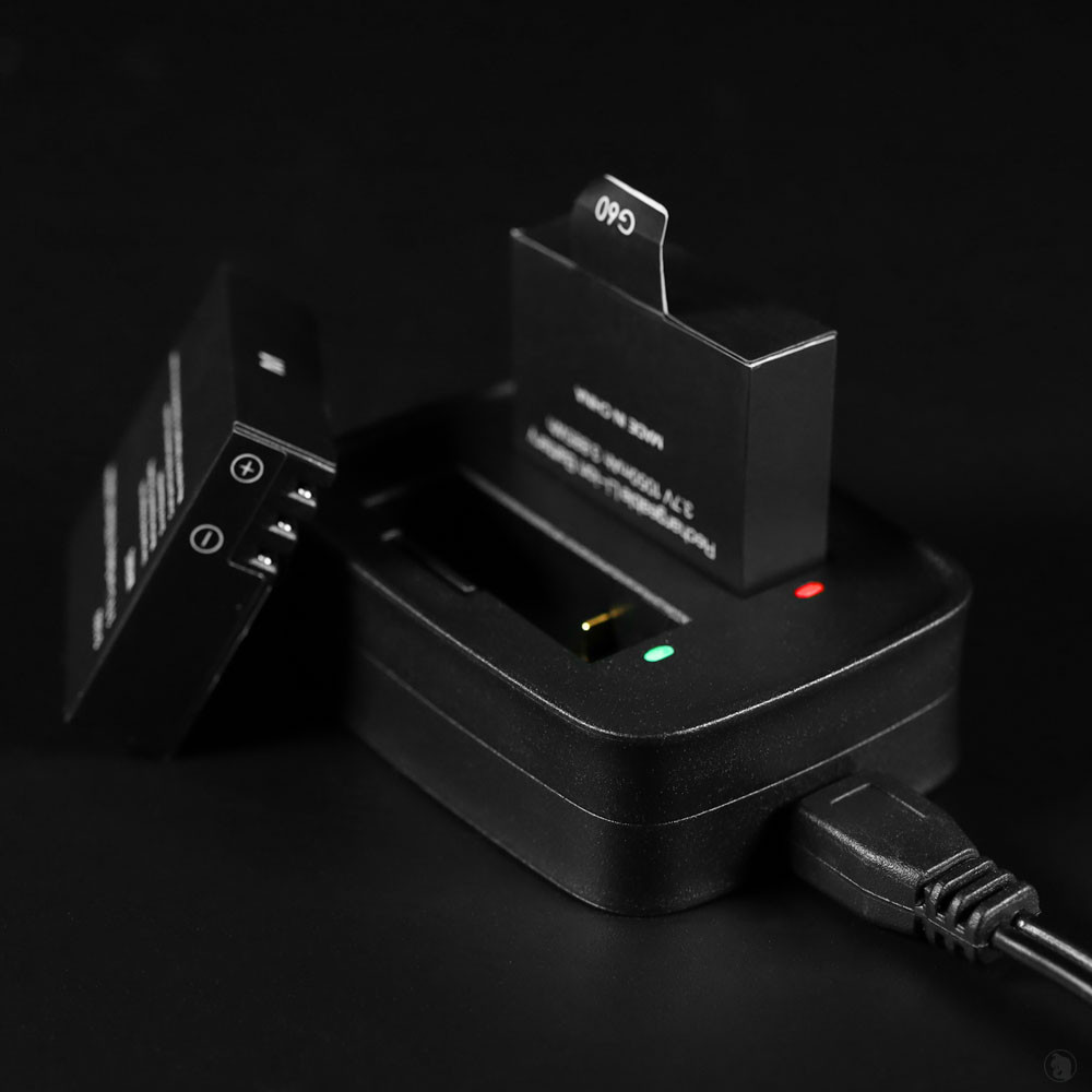 This charging base allows you to charge 2 Phasm Cam batteries at one time. This way, you can be using one while the second is charging. The base comes with a USB charging cable.