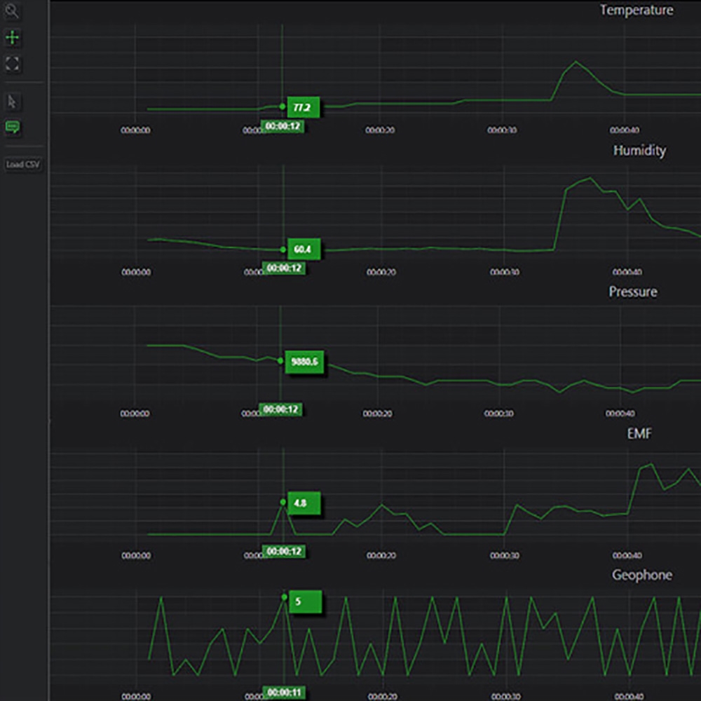 Seeing a reading spike during an investigation is helpful. But what if you could see every sampling of all environmental readings on one timeline? Now you can with the EDI+. This new features takes the readings of the EDI+ sensors and records them to an SD card which can be viewed later in a timeline graph or spreadsheet via an online app or downloadable Windows program. Now you can analyze all of the sensor data on a timeline including EMF, temperature, vibration, pressure and humidity.