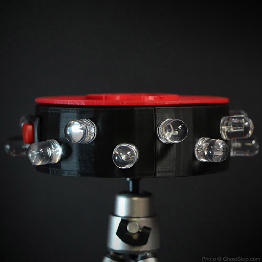 **Note** The LED lights on this unit are infrared only. Since there is no visible light emitted from the unit you will not see them light up with the naked eye. You must have a full spectrum, night vision or infrared sensitive camera, camcorder or DVR cameras in order to take advantage of this light. Distance varies by camera and settings. Parts of this product are 3D printed right here at GhostStop. Each one is made with great care by hand. As such, each one may have unique elements in the texture that could appear to be small defects. These unique elements do not affect the function of the product. Though we do our best to keep them as uniform as possible, each one will be unique in some small way since they are each printed and hand-built for quality. Thanks for your understanding in that.